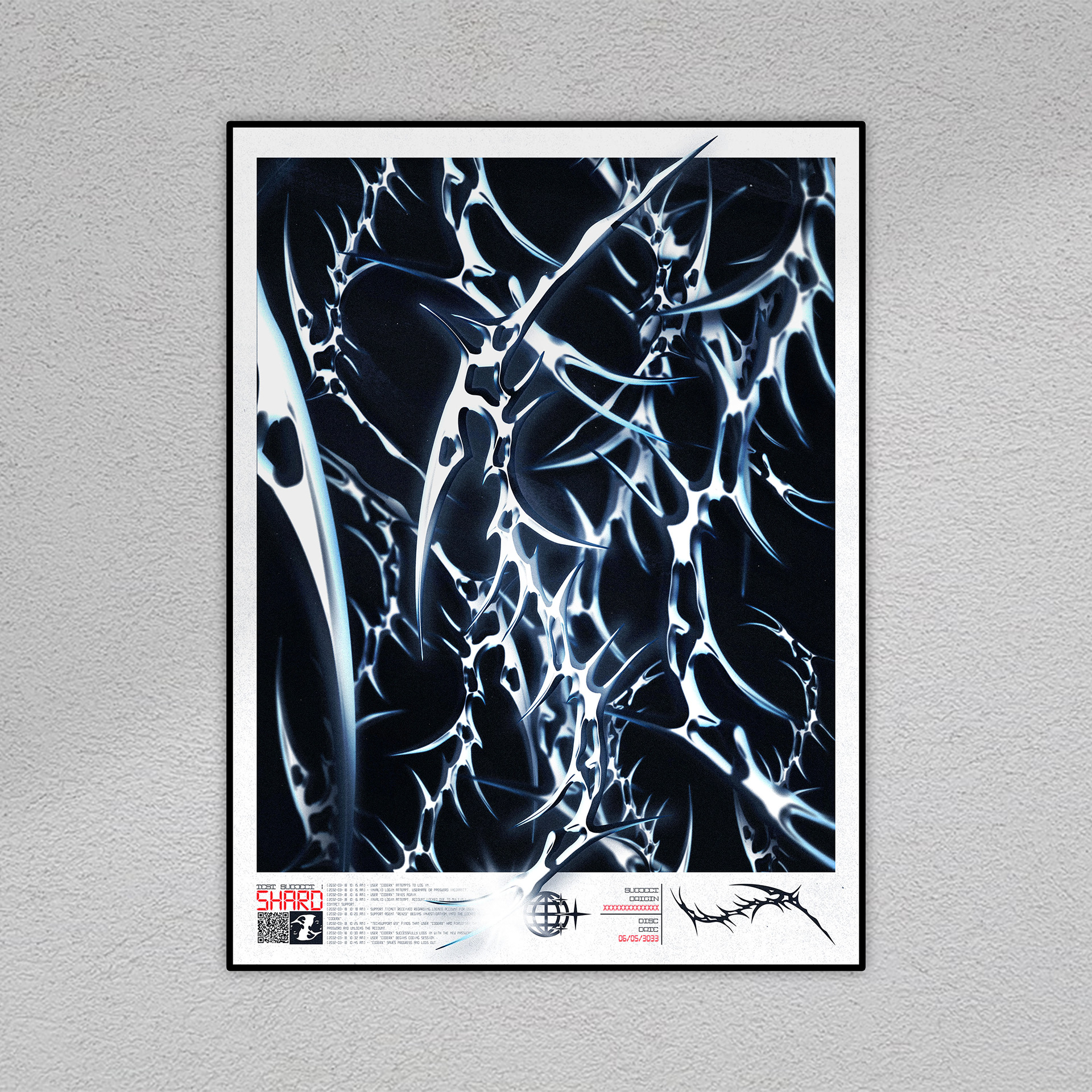 Here's a poster I designed based on an upcoming series of shapes I call "Archetypes". These shapes are all hand drawn and given effects to appear as metallic. SHARD1 is an element found in space with no exact origin, found in the future.